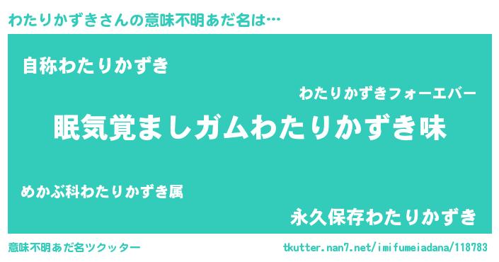 | ヘコむあだ名 | 『わたりかずき(震え声)』『豆乳』 |