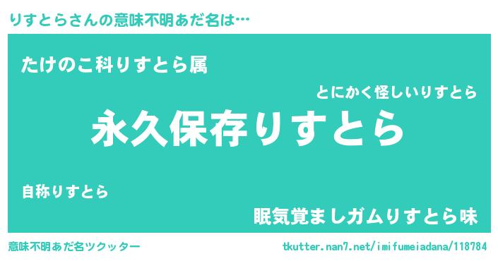 | ヘコむあだ名 | 『りすとら(笑)』『りすぷりん』 |