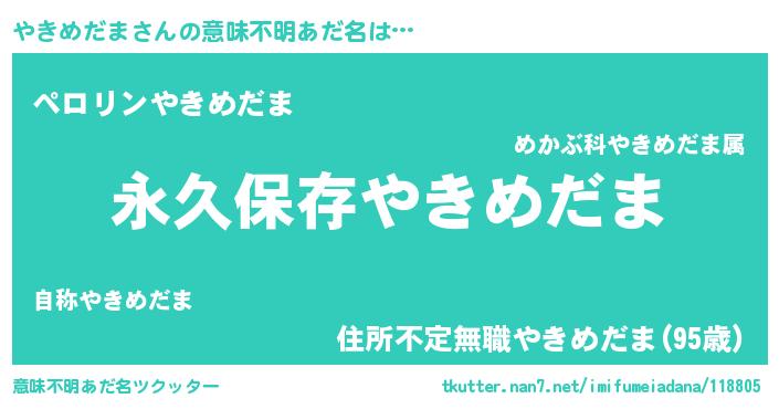 | 胡散臭い通販商品みたいなあだ名 | 『前代未聞の健康食品…その名も「やきめだま」』 |