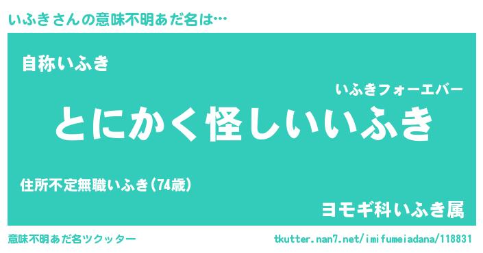| 欧米人風あだ名 | 『ウサインいふき』『ケンブリッジいふき』 |