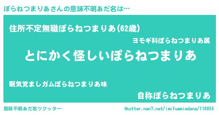| 胡散臭い通販商品みたいなあだ名 | 『信頼と実績のネックレス…その名も「ぽらねつまりあ」』 |