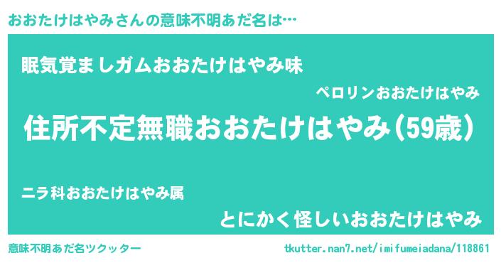 | 胡散臭い通販商品みたいなあだ名 | 『あなたにだけ特別に提供する限定10本のレアな日本酒…その名も「おおたけはやみ」』 |