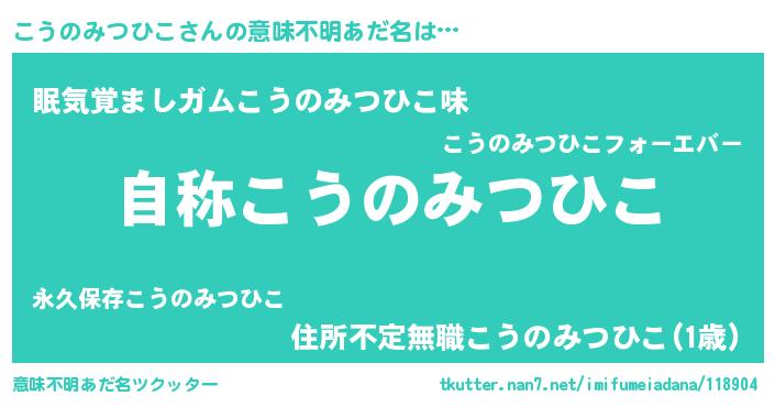 | 男性向けラノベタイトル風あだ名 | 『こうのみつひこに滅ぼされるだけの簡単なお仕事です』 |