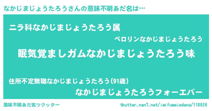 | 女子向けラノベタイトル風あだ名 | 『なかじまじょうたろう恋絵巻』 |