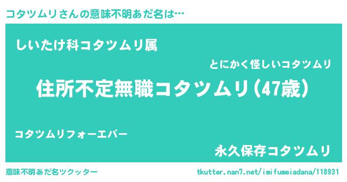 | 男性向けラノベタイトル風あだ名 | 『この素晴らしい世界にコタツムリを!』 |
