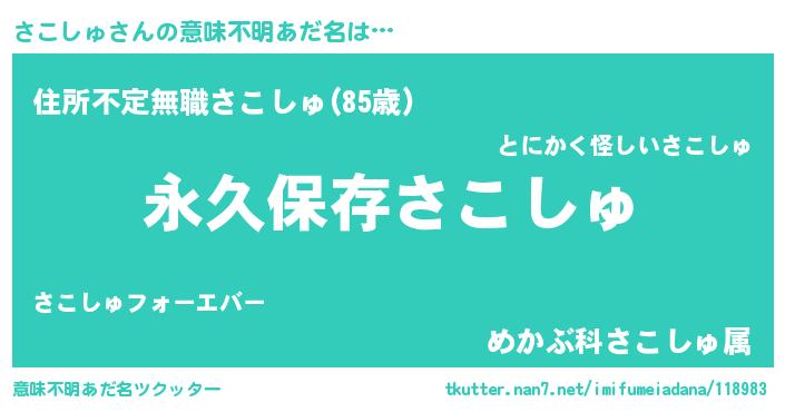 | 胡散臭い通販商品みたいなあだ名 | 『来世でも幸せになれる健康食品…その名も「さこしゅ」』 |