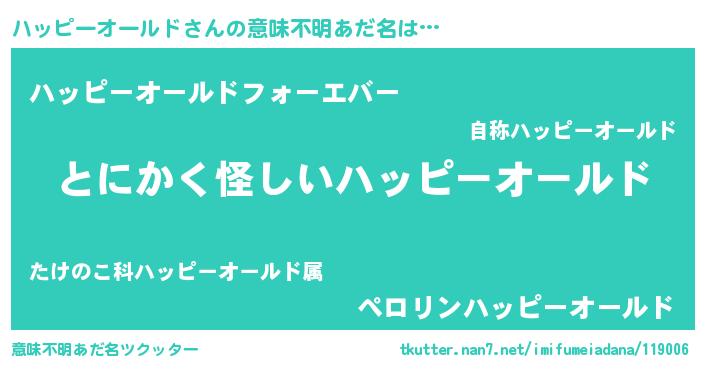 | ヒーロー風カッコイイあだ名 | 『魔戒騎士ハッ』『ネオハッピーオールド』 |