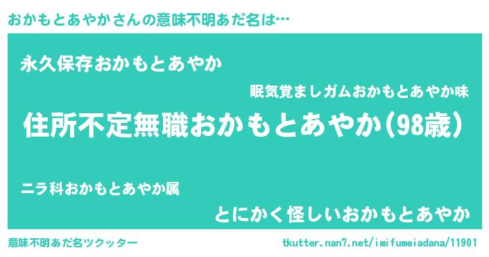 | 伝説のあだ名 | 『古より伝わる勇者おかもとあやか』 |