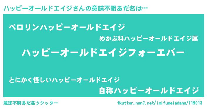 | ヒーロー風カッコイイあだ名 | 『ウルトラハッピーオールドエイジマン』 |