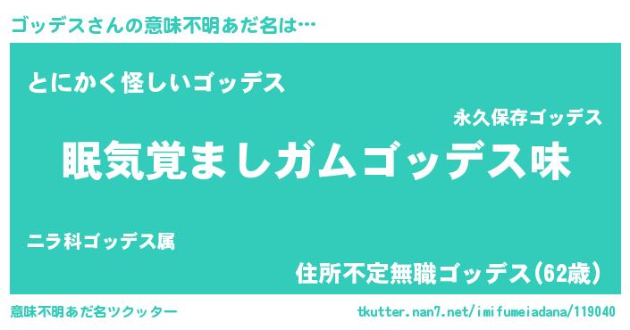 | 男性向けラノベタイトル風あだ名 | 『ノーゲーム・ノーゴッデス』 |