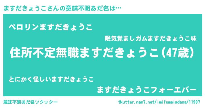 | 男性向けラノベタイトル風あだ名 | 『この素晴らしい世界にますだきょうこを!』 |