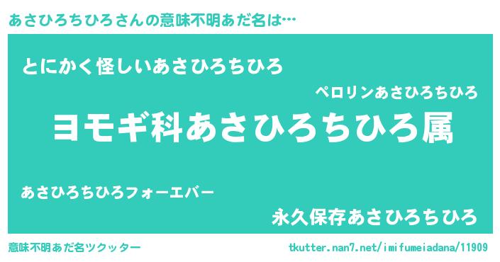| ポケモン風あだ名 | 『アサキング』『ヒアサヒロチヒロ』 |