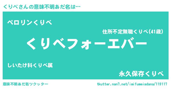 | ヘコむあだ名 | 『なまこ酢』『くりにー』『くりお』 |
