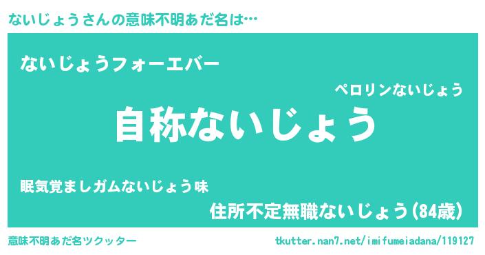 | 女子向けラノベタイトル風あだ名 | 『ないじょうなんてお断りですっ。』 |
