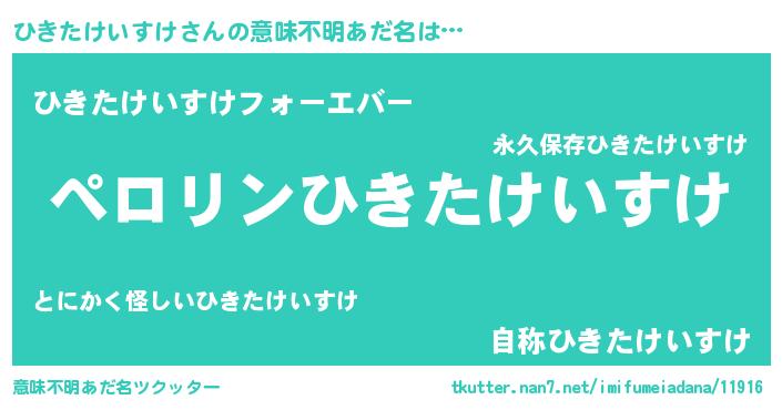 | 男性向けラノベタイトル風あだ名 | 『ひきたけいすけに滅ぼされるだけの簡単なお仕事です』 |