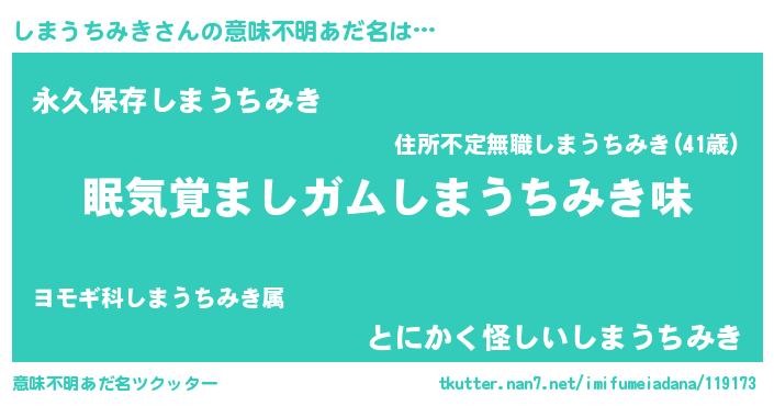 | 胡散臭い通販商品みたいなあだ名 | 『100人中100人が認めたイリジウム磁石…その名も「しまうちみき」』 |