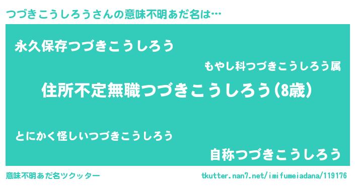 | ヘコむあだ名 | 『つづきこうしろう(笑)』『つづお』 |