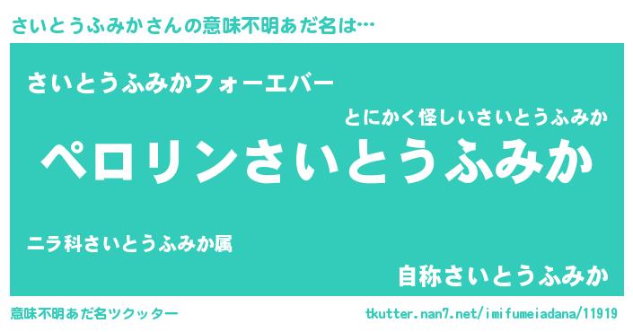 | 肩書あだ名 | 『さいとうふみか御曹司』 |