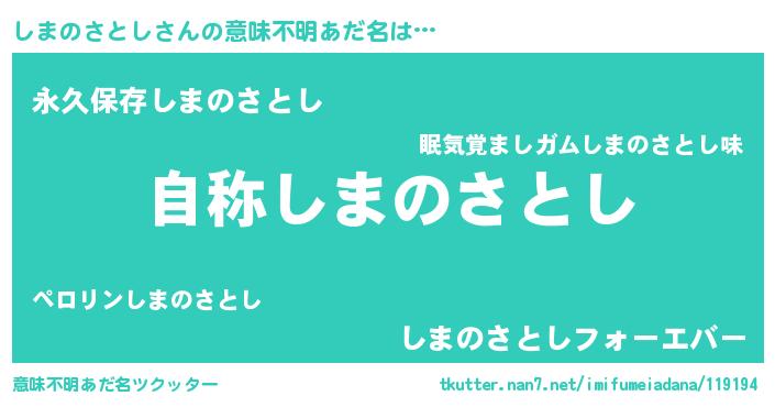 | 男性向けラノベタイトル風あだ名 | 『Re:しまのさとしから始める異世界生活』 |