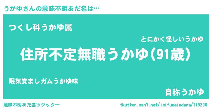 | ヒーロー風カッコイイあだ名 | 『仮面ウカダー』『最強戦士ウカユ』 |
