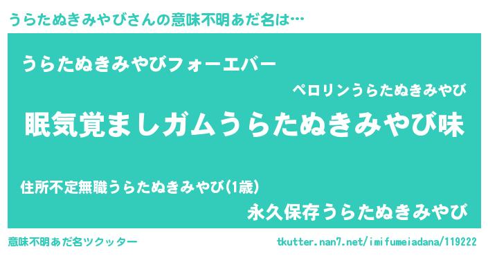 | 胡散臭い通販商品みたいなあだ名 | 『100人中100人が認めたマグネット磁石…その名も「うらたぬきみやび」』 |