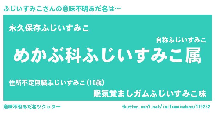 | ヘコむあだ名 | 『ふじいすみこ(笑)』『ふじぷりん』 |