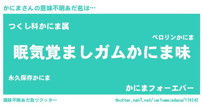 | ヒーロー風カッコイイあだ名 | 『天空の使者かにま』『スーパーカニマ』 |