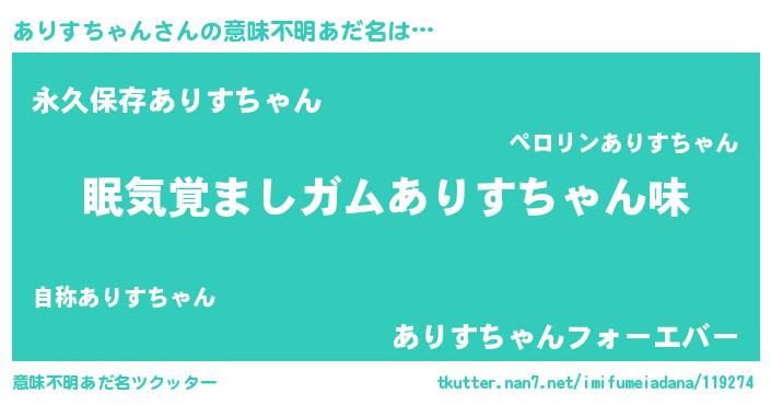 | ヘコむあだ名 | 『ありすちゃん(笑)』『酢こんぶ』 |