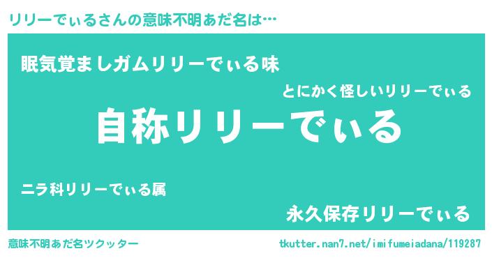 | 女子向けラノベタイトル風あだ名 | 『リリーでぃるなんてお断りですっ。』 |