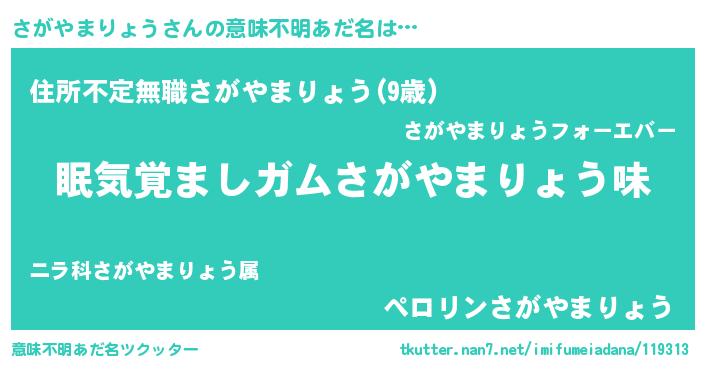 | 男性向けラノベタイトル風あだ名 | 『ノーゲーム・ノーサガヤマリョウ』 |
