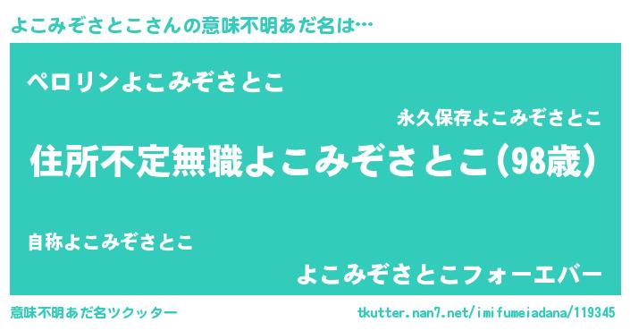 | 欧米人風あだ名 | 『アンジェラ・よこみぞさとこ』 |
