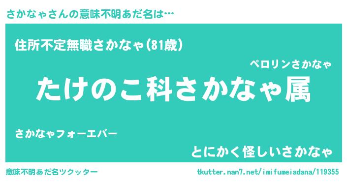 | 男性向けラノベタイトル風あだ名 | 『転生したらさかなゃだった件』 |