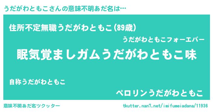 | ヒーロー風カッコイイあだ名 | 『慈愛の使者うだがわともこ』 |