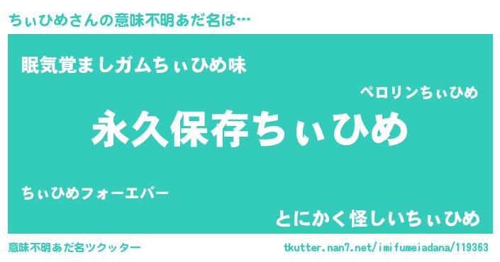 | ヒーロー風カッコイイあだ名 | 『ネオチィヒメ』『愛の使者ちぃひめ』 |