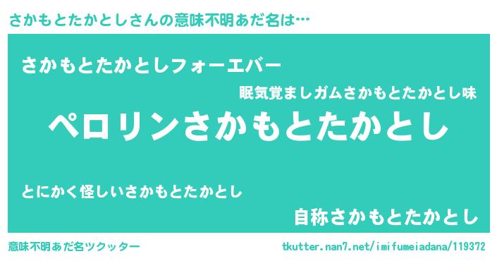 | 男性向けラノベタイトル風あだ名 | 『サカモトタカトシアートオンライン』 |