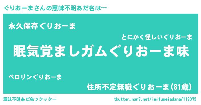 | ヘコむあだ名 | 『ぐりおーま(遠い目)』『ぐりっぺ』 |