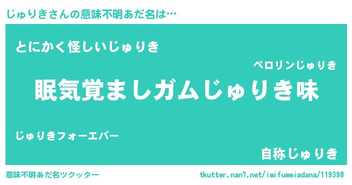 | 欧米人風あだ名 | 『ダニエルじゅりき』『ウサインじゅりき』 |