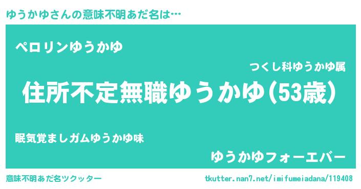 女子向けラノベタイトル風あだ名 | 『乙女ゲームの破滅フラグしかない悪役ゆうかゆに転生してしまった…』 |