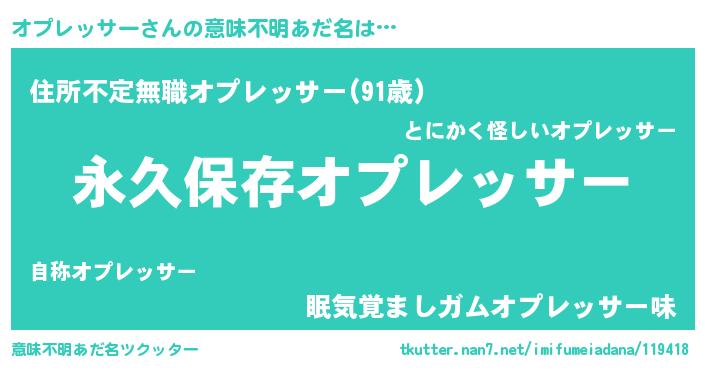 | 男性向けラノベタイトル風あだ名 | 『オプレッサーという概念が存在しない退屈な世界 』 |
