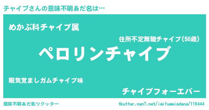 | 男性向けラノベタイトル風あだ名 | 『チャイブの憂鬱』『チャイブスレイヤー』 |