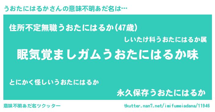 | 女子向けラノベタイトル風あだ名 | 『死神うおたにはるかの再婚』 |