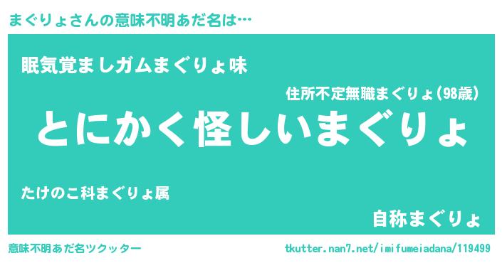 | 男性向けラノベタイトル風あだ名 | 『まぐりょの嫁は女の子じゃないと思った?』 |