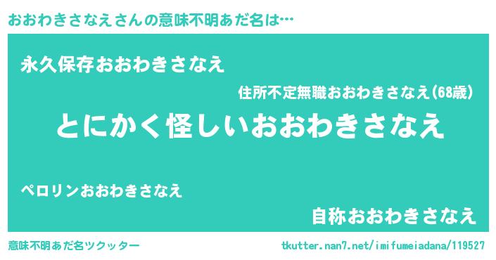 | 男性向けラノベタイトル風あだ名 | 『おおわきさなえの嫁は女の子じゃないと思った?』 |