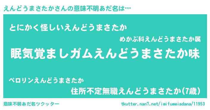 | 男性向けラノベタイトル風あだ名 | 『えんどうまさたかに滅ぼされるだけの簡単なお仕事です』 |