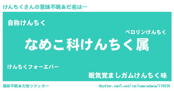 | ヘコむあだ名 | 『けんもー』『豆乳』『けんお』 |