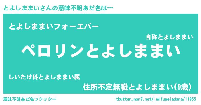 | 男性向けラノベタイトル風あだ名 | 『トヨシママイアートオンライン』 |