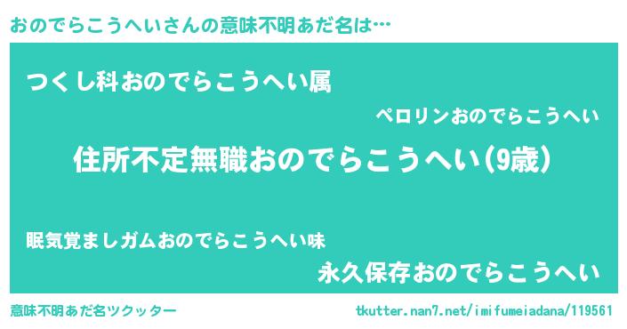 | ヘコむあだ名 | 『おのでらこうへい(笑)』『おのもー』 |