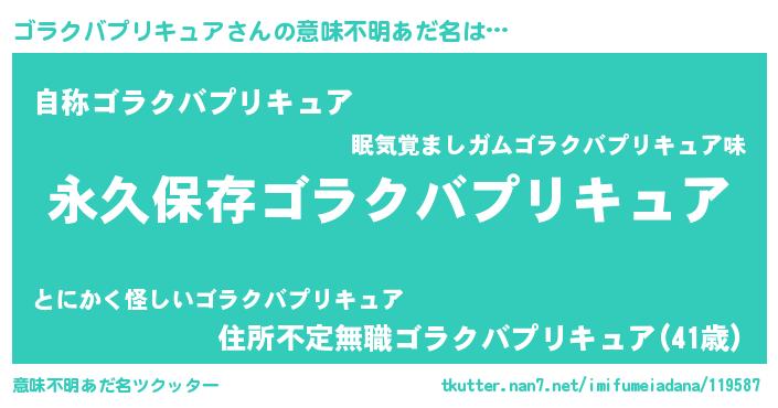 | 胡散臭い通販商品みたいなあだ名 | 『来世でも幸せになれる健康食品…その名も「ゴラクバプリキュア」』 |