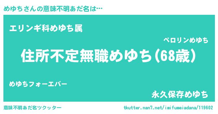 | ヘコむあだ名 | 『めゆち(苦笑)』『めゆにゅー』 |