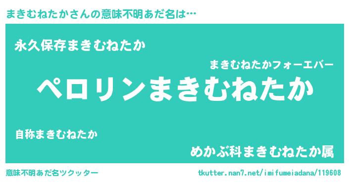 | 欧米人風あだ名 | 『まきむねたか・ステッグマイヤー』 |